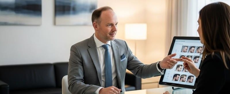 - Initial Consultation: Assessing facial features, hair loss patterns, and patient expectations.