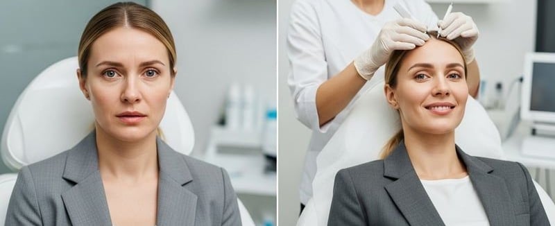 - Инъекции ботокса и филлеров: коррекция формы лица и увеличение объема губ.